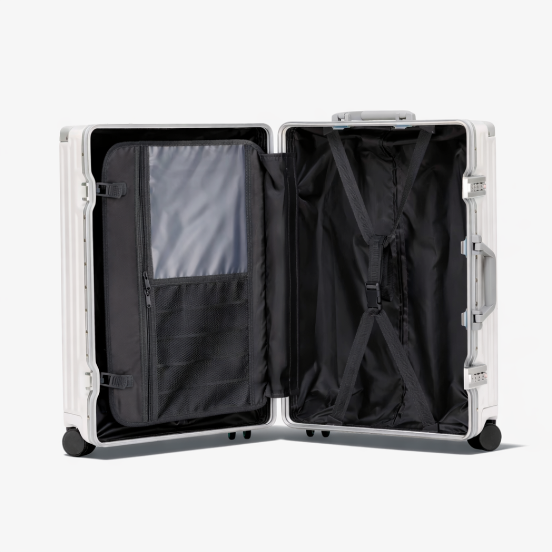 De stille 360-graden wielen zorgen voor een moeiteloze en stabiele voortbeweging in elke richting. Ontworpen voor maximale souplesse en minimale weerstand, bewegen ze fluisterstil met je mee, van luchthaven tot hotellobby en bieden ze ultiem comfort en volledige controle, ongeacht het tempo van je reis.