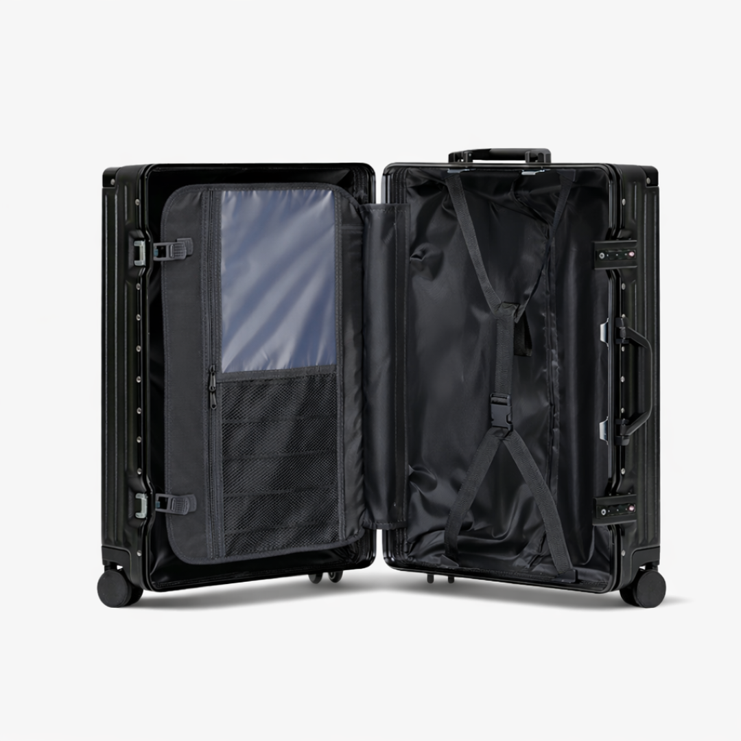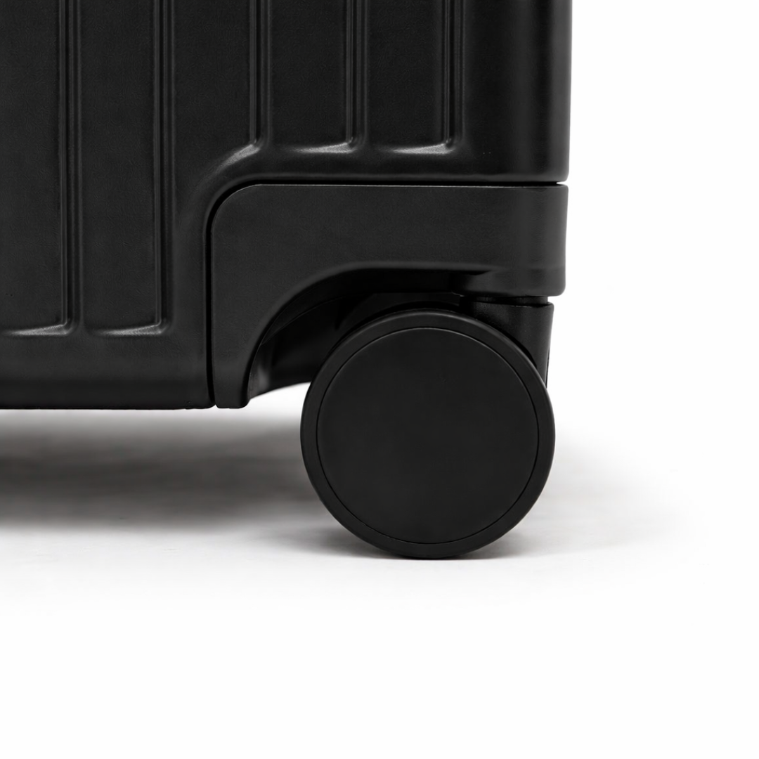 De stille 360-graden wielen zorgen voor een moeiteloze en stabiele voortbeweging in elke richting. Ontworpen voor maximale souplesse en minimale weerstand, bewegen ze fluisterstil met je mee, van luchthaven tot hotellobby en bieden ze ultiem comfort en volledige controle, ongeacht het tempo van je reis.