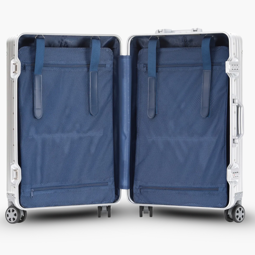 Entdecken Sie den Unterschied eines Koffers aus 100% Aluminium: Eine Kombination aus Stil und Funktionalität, die Ihre Reisen mühelos und elegant macht.
