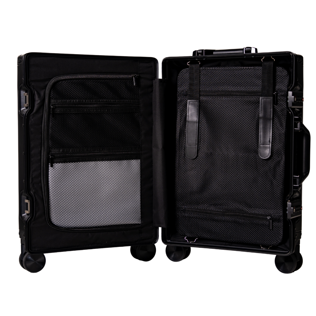 Gefertigt aus hochwertigem Aluminium. Robust, leicht und elegant. Das Material bietet optimalen Schutz und entwickelt mit der Zeit eine einzigartige Patina – perfekt für jede Reise.