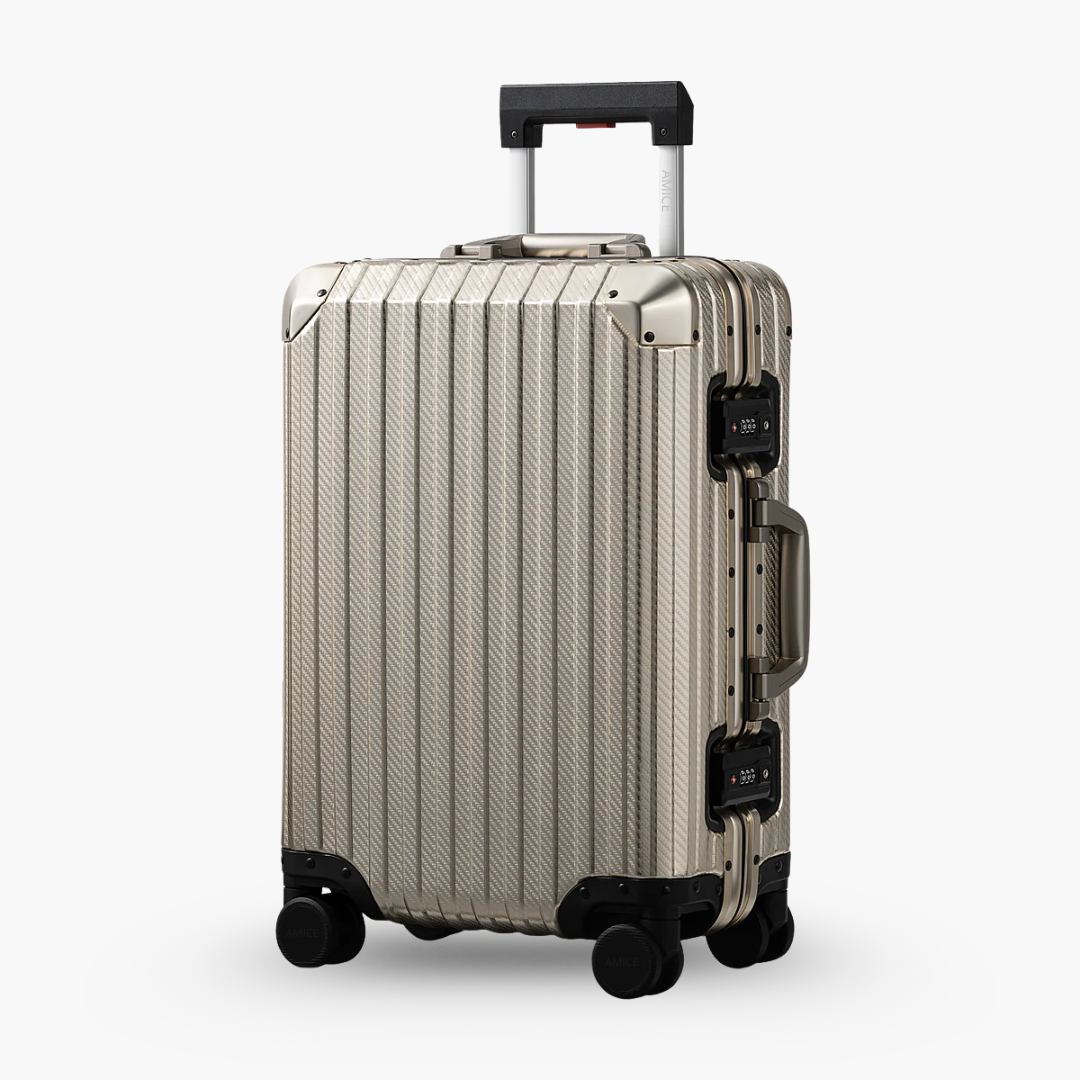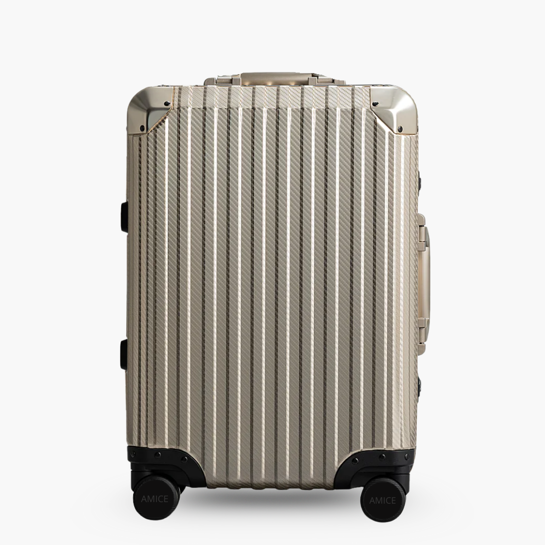 Der AMICE Aluminiumkoffer wurde für anspruchsvolle Reisende entwickelt, die Wert auf Stil und Funktionalität legen. Gefertigt aus hochwertigem Aluminium, bietet dieser Koffer optimalen Schutz für Ihr Gepäck. Das reißverschlusslose Verschlusssystem und die beiden TSA-zugelassenen Schlösser gewährleisten maximale Sicherheit, während die 360°-Rollen für ein sanftes und leises Gleiten durch Flughäfen und Städte sorgen.